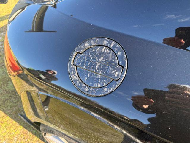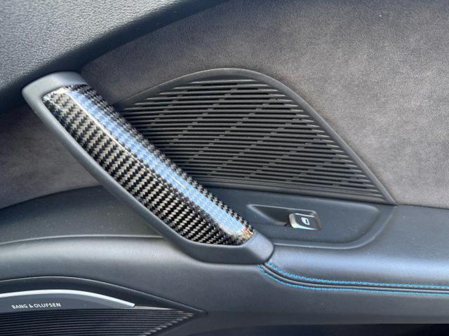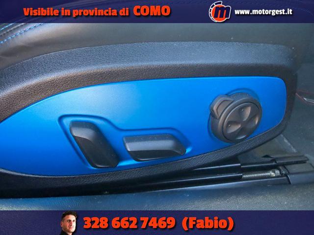 Internamente i sedili a guscio in pelle con cuciture blu (riscaldati) sono spettacolari; anche qui troviamo il carbonio nella plancia centrale, l’impianto B&O e la retrocamera.