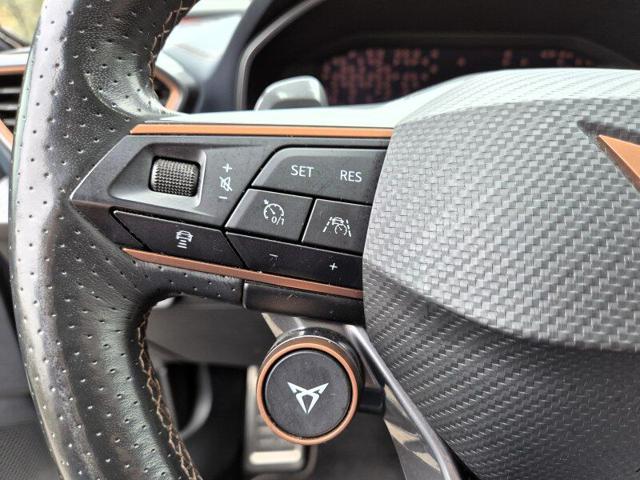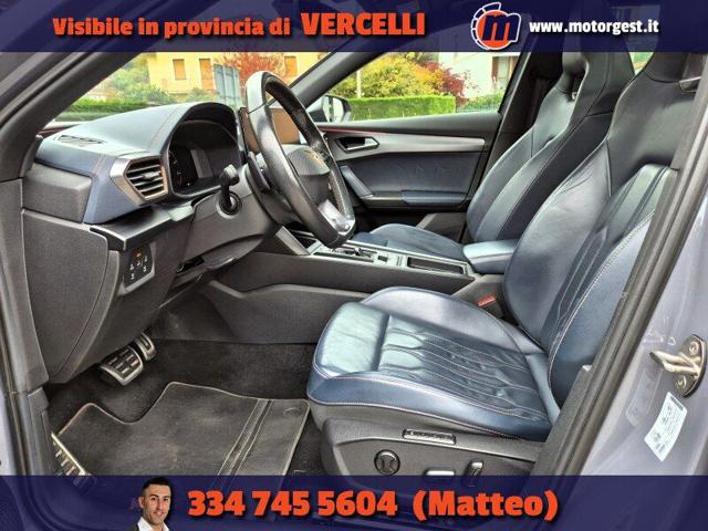 Gli interni sportivi sono in pelle, con i sedili riscaldabili e quello lato guida a regolazione elettrica, i vetri posteriori sono oscurati, il tetto panoramico è apribile e la dotazione comprende, oltre al comodo portellone elettrico, ai sensori di parcheggio anteriori, posteriori e alla retrocamera, tutti i più recenti dispositivi di sicurezza come il cruise control adattivo, l'assistenza alla frenata d'emergenza, il sistema di mantenimento corsia, la frenata automatica e il sistema Cupra Drive Profile, che permette di ottimizzare le prestazioni e i consumi in funzione dello stile di guida.
